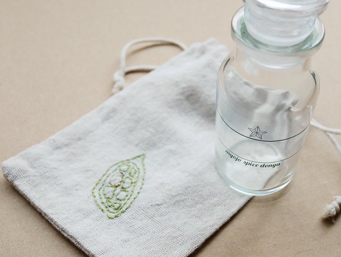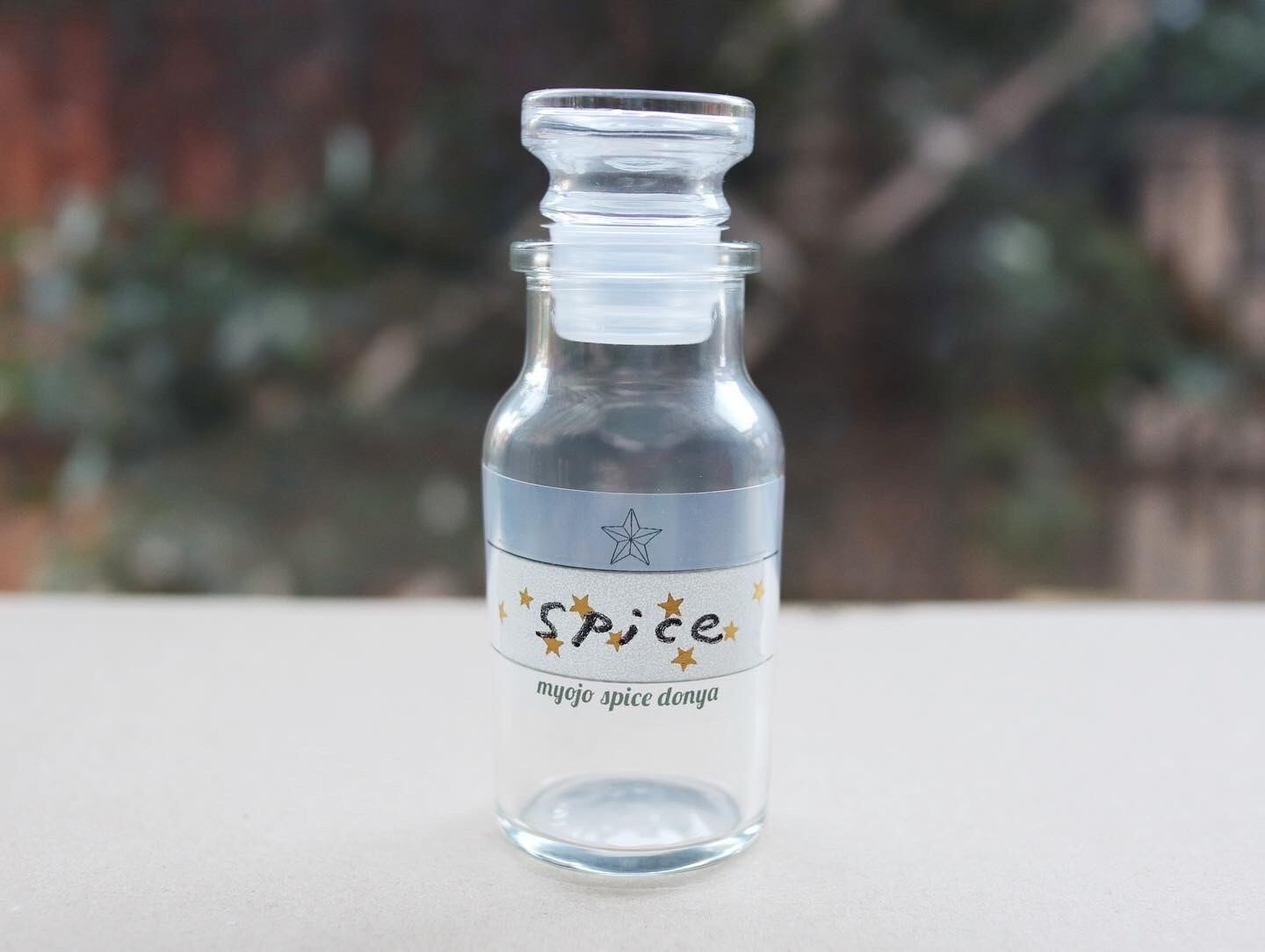 『明星スパイス問屋』の、並べてかわいいオリジナル瓶(キャップ付)。